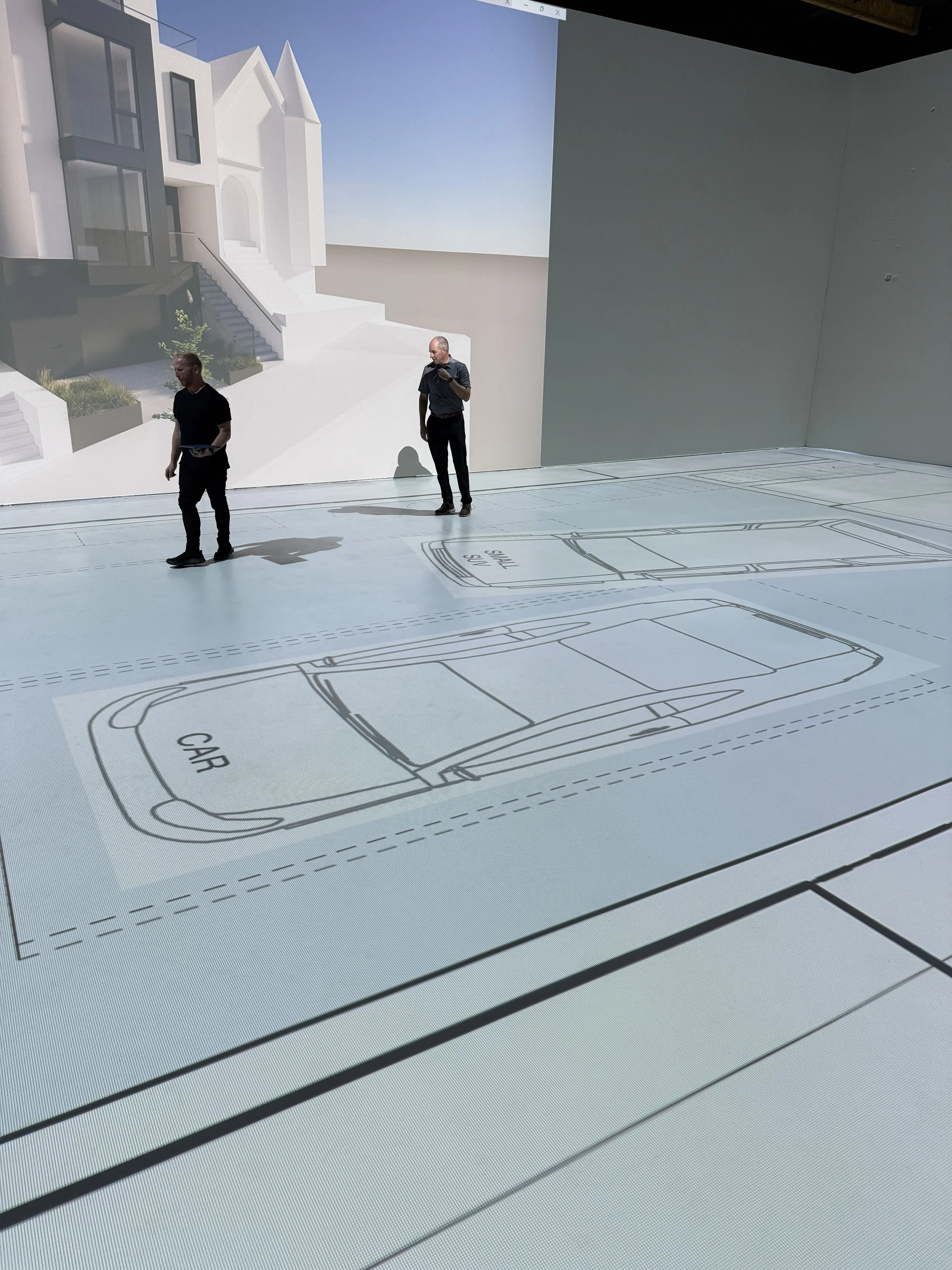 When you arrive at Walk Your Plans Sacramento in Rancho Cordova, you’ll be welcomed into our clean, modern projection studio, a purpose-built environment where your plans are projected at 1:1 scale across our expansive floors.