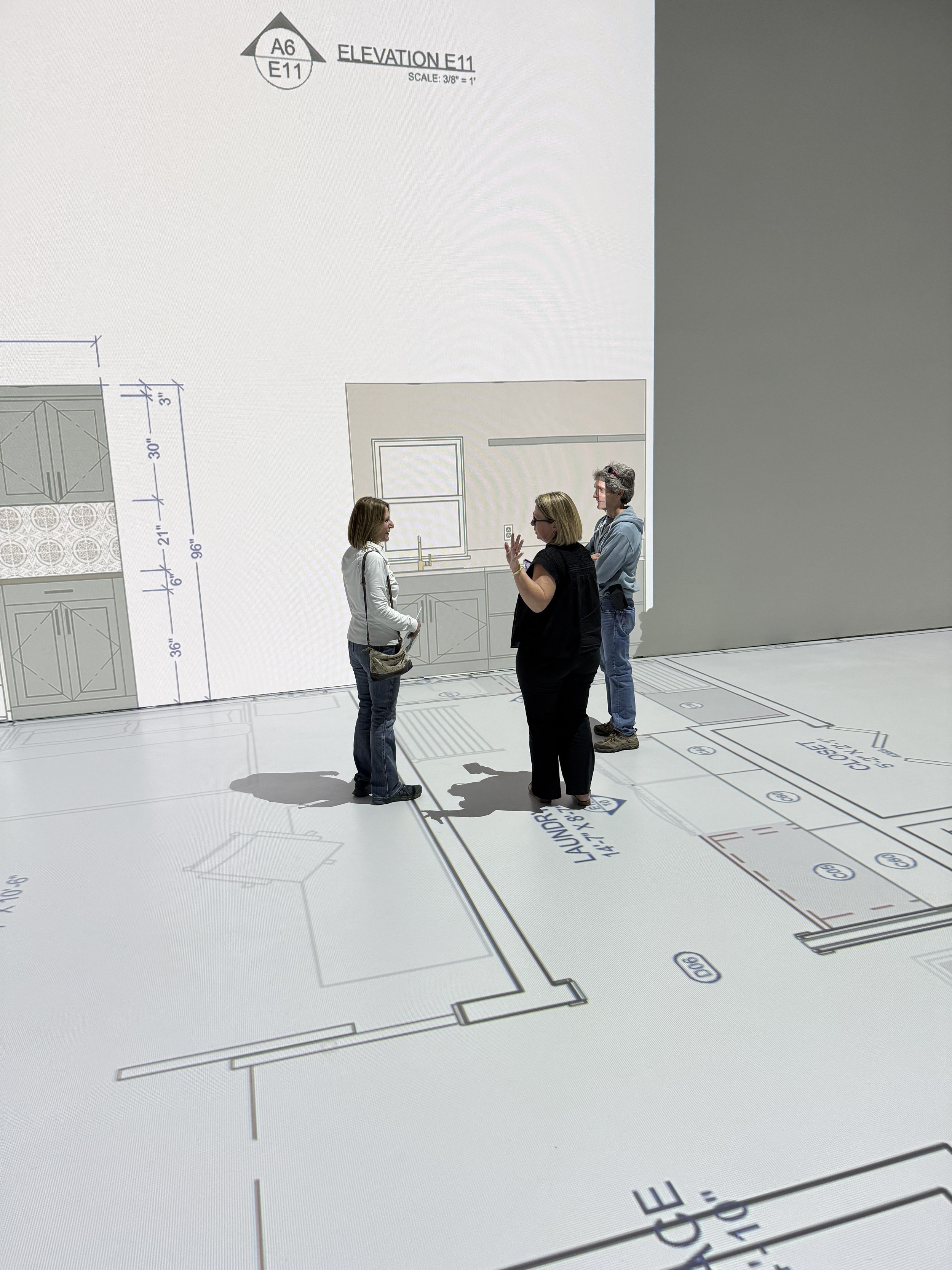 Walk Your Plans is a life-size blueprint projection studio that allows you to physically walk your space before building.